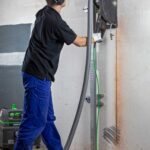 Pemotongan material konstruksi tebal di area yang membutuhkan kebersihan (dengan vakum) atau pendinginan (dengan air).